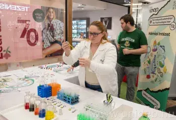 Látványos kísérletekkel, mikroszkópos vizsgálatokkal és a továbbtanulással kapcsolatos részletes információkkal várta a fiatalokat a Debreceni Egyetem Természettudományi és Technológiai Kara szerdán a Csapó utcai bevásárlóközpontban.